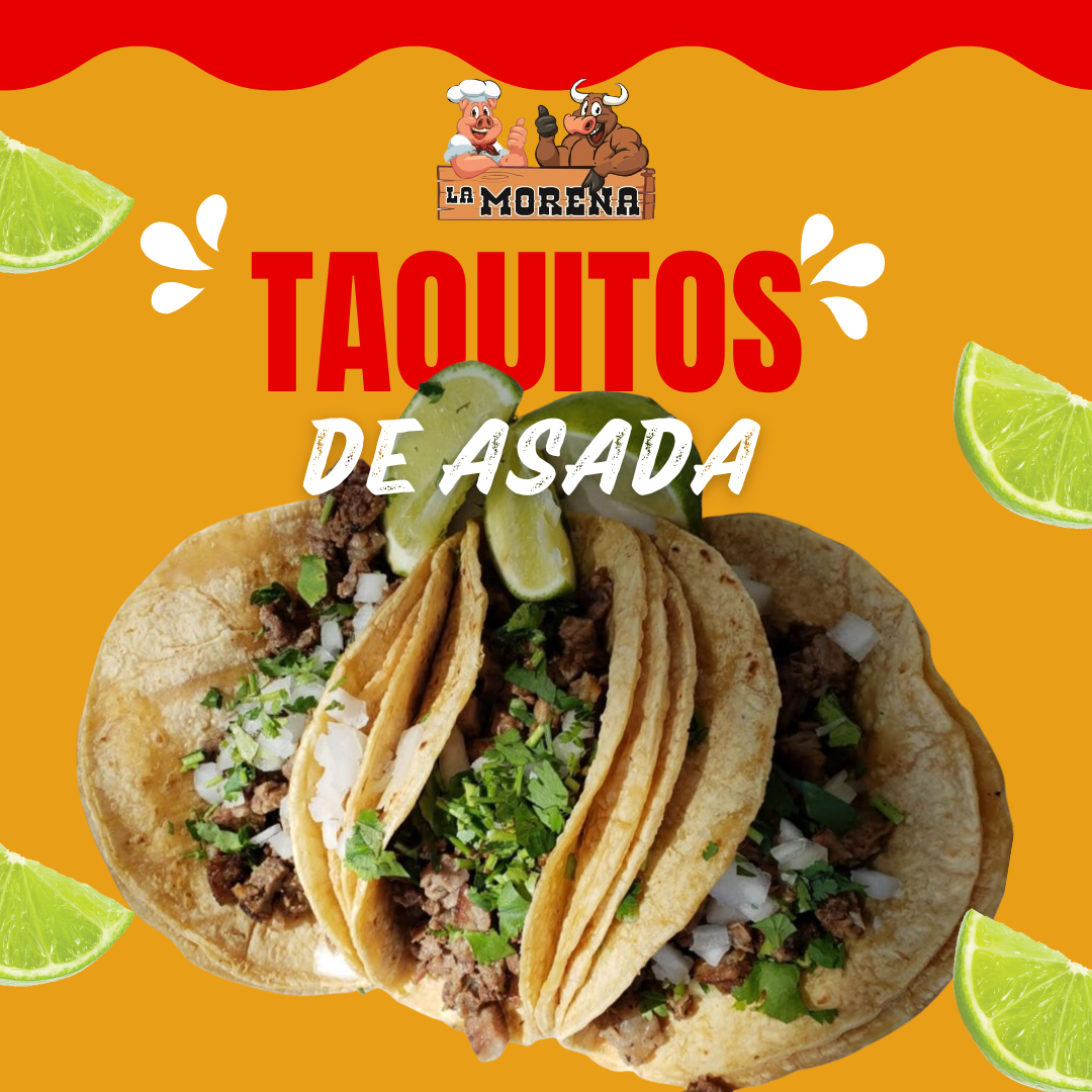 Taquitos irresistibles hechos con carne asada tierna y llena de sabor , Acompañados de salsa picante ,cebolla y cilantro fresco ..