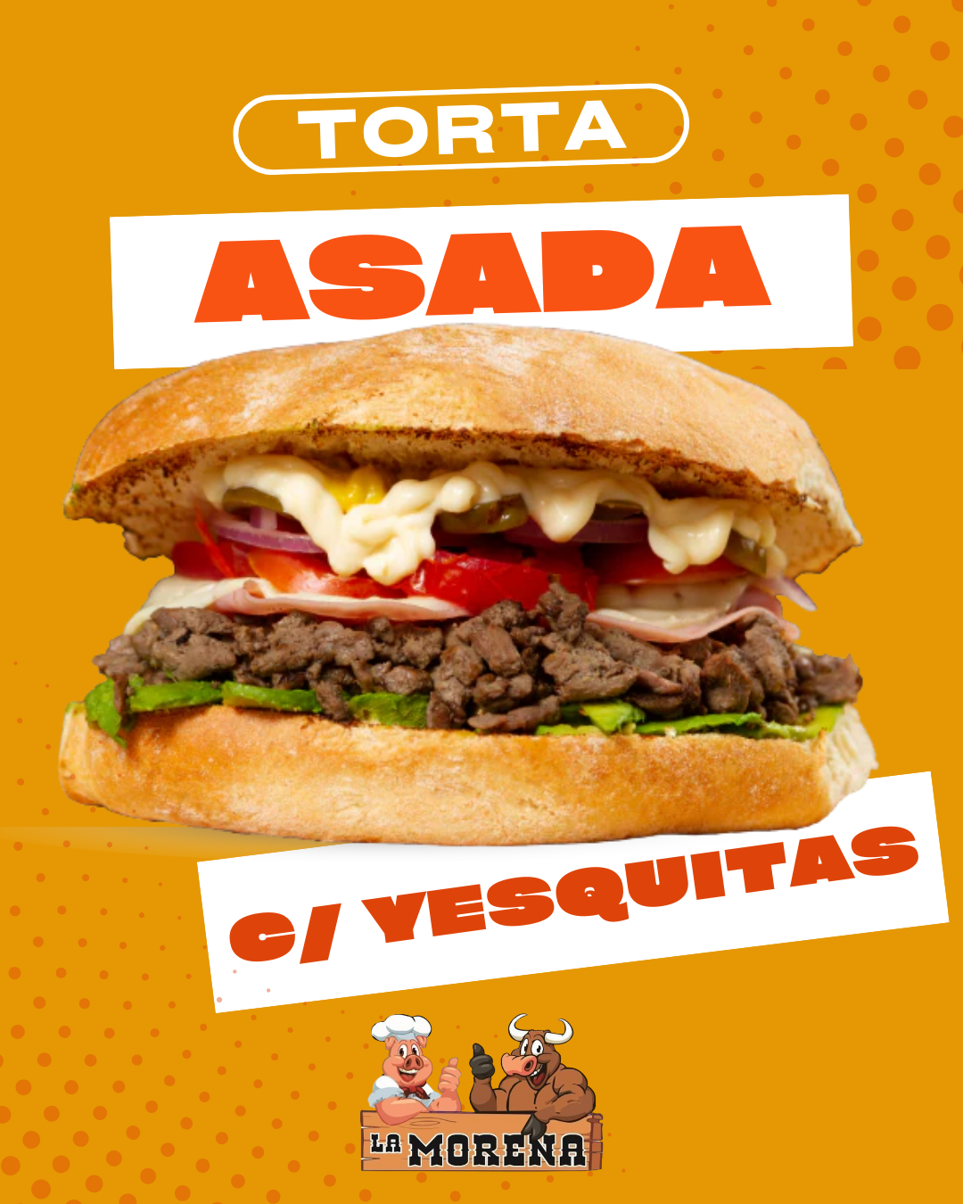 Torta de bistec de res jugoso, costra de queso fundido, aguacate fresco ,lechuga crujiente ,jitomate ,cebolla asada y chile toreado .Todo acompañado de mayonesa,mostaza y un toque de sal para realzar su sabor, un clásico que conquista a cualquiera .