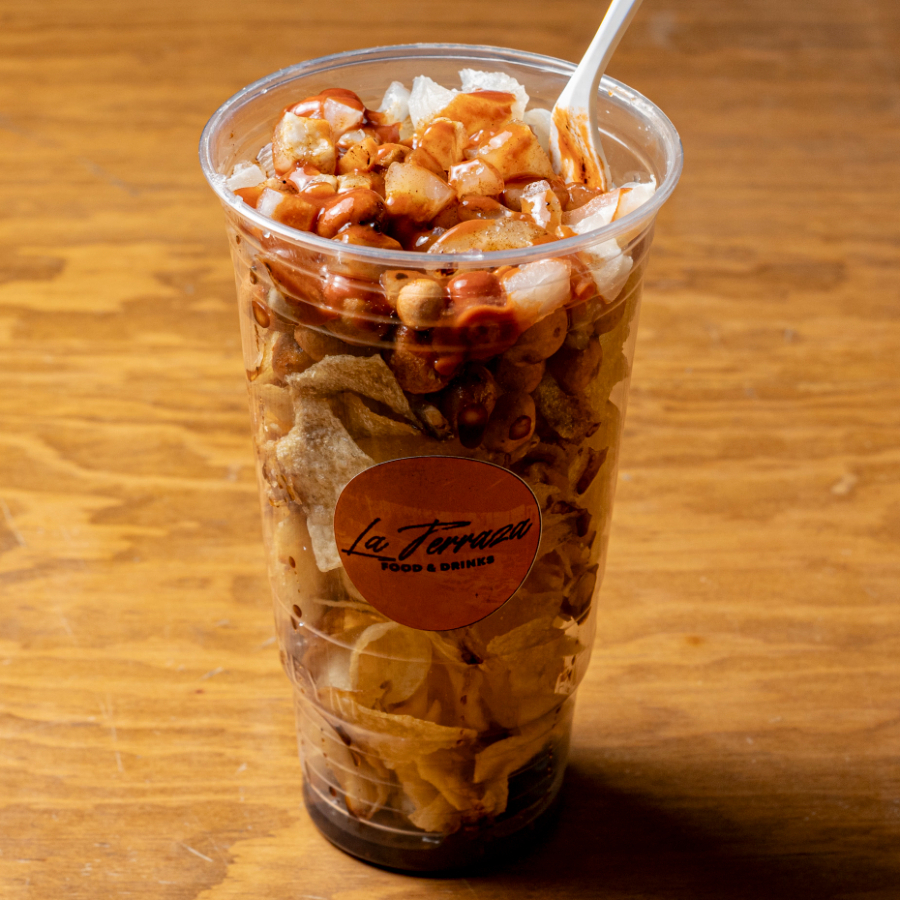 michepapas de litro ( cacahuates , cueritos , pepina salsas negras )