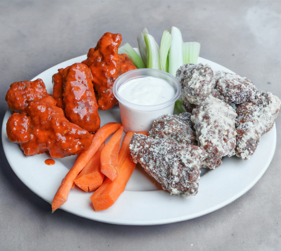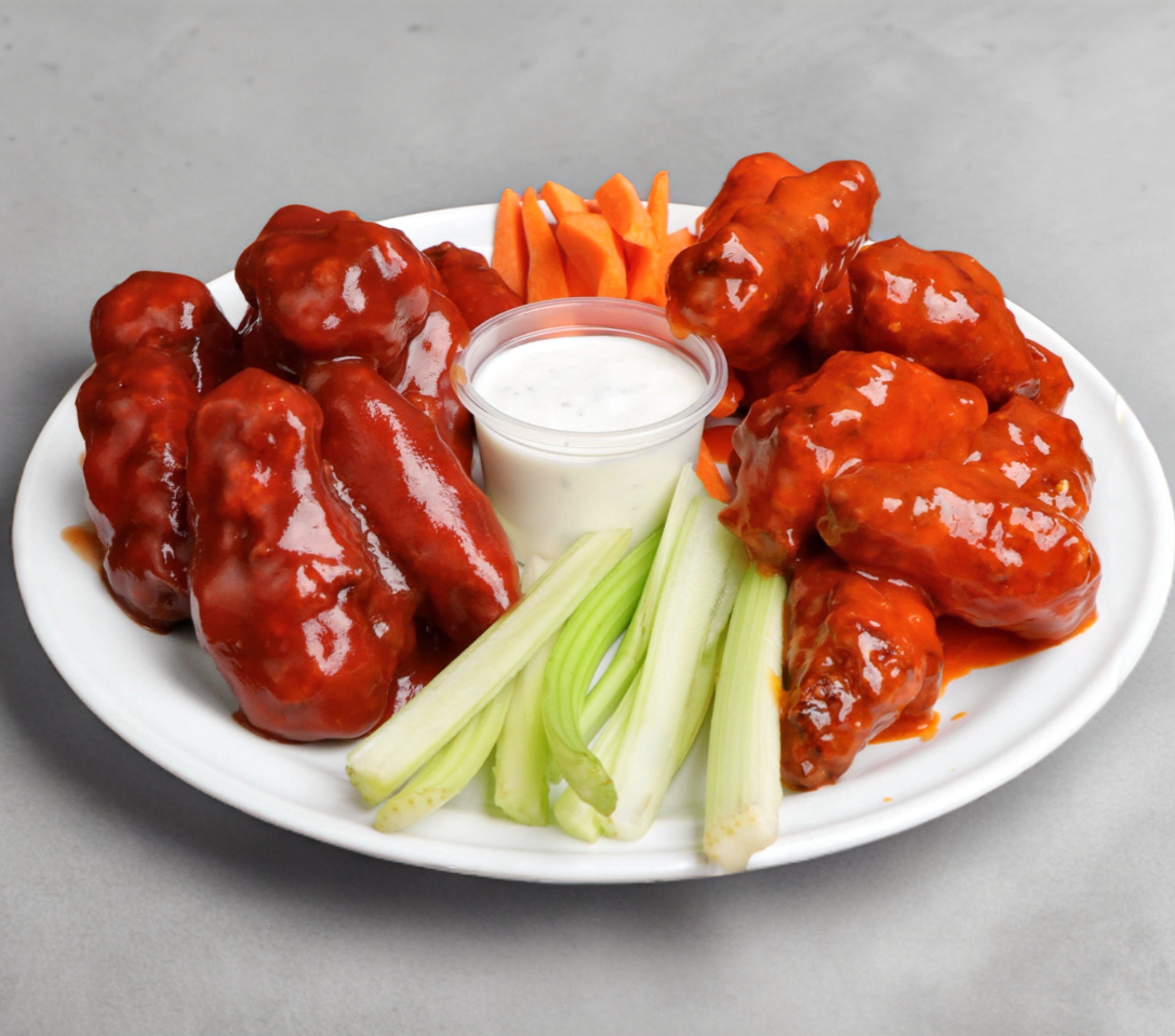 Orden de 4 alitas, acompañadas de una porción de crudités y salsa a elegir.