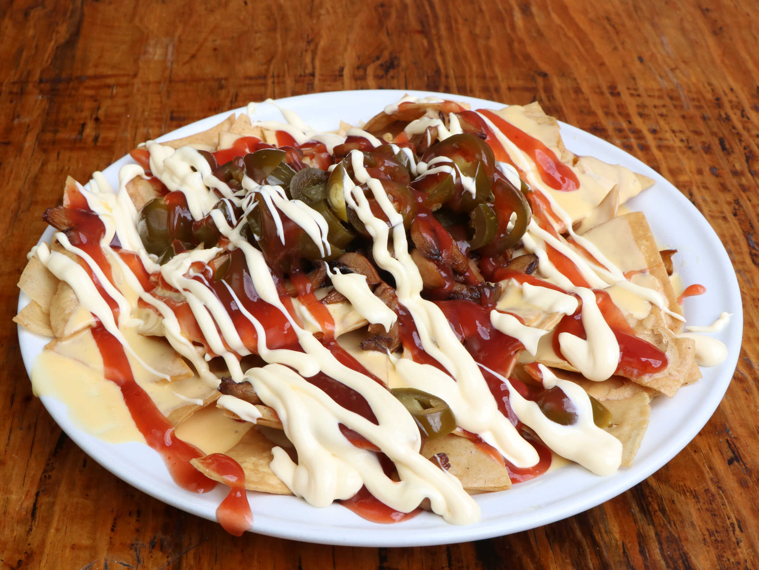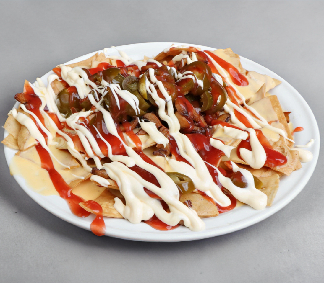 Salsa de queso, cátsup, mayonesa, y jalapeños.
