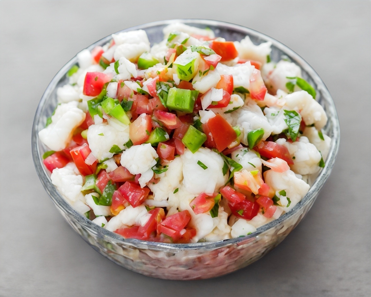Filete de pescado cocido: contiene cebolla, tomate, chile serrano, pepino, aguacate, salsa, catsup, mayonesa, tostadas y galletas saladas.