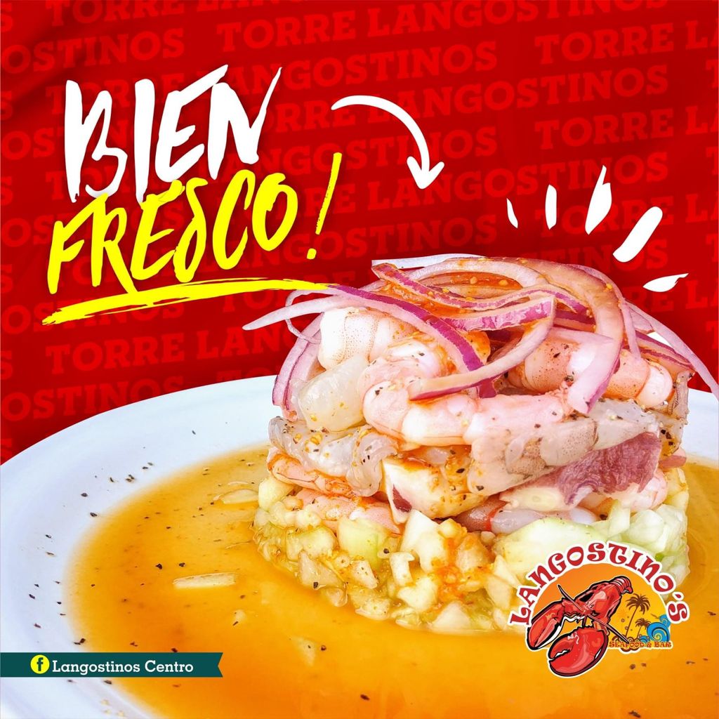 Camarones cocidos, pulpo, callo de almeja, camarones, aguachile, pepino, cebolla morada, bañados en salsa langostinos.