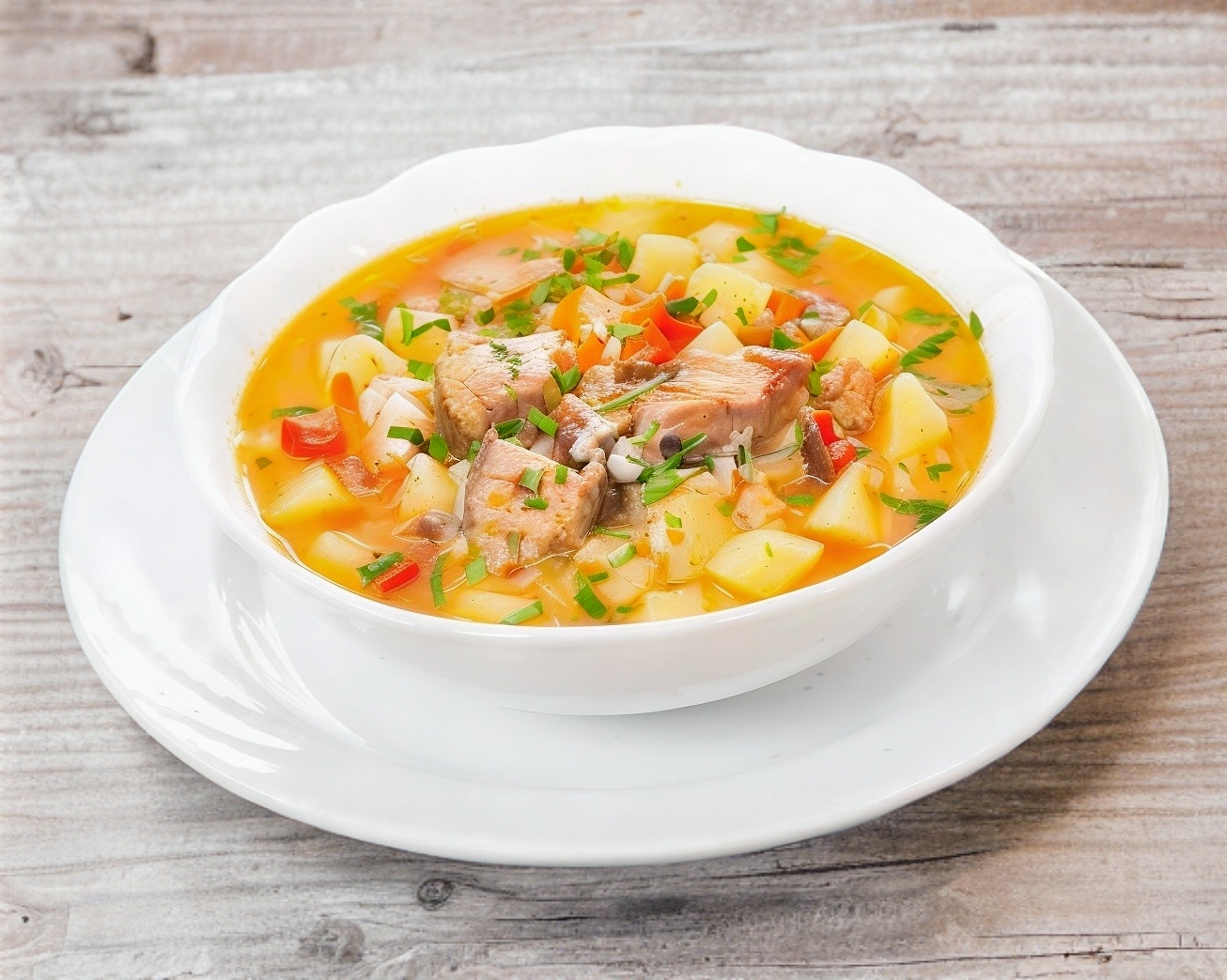 Bañados en salsa de la casa acompañados de pure de papá y verduras.