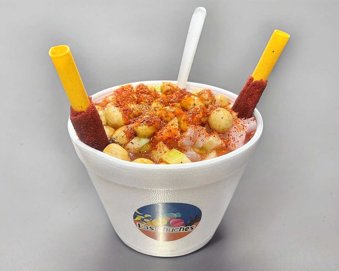 Papa, Pepino, Cueritos, Cacahuate, Salsa Maggi, Salsa Inglesa, Clamato, Chile en Polvo, Limón y Salsa