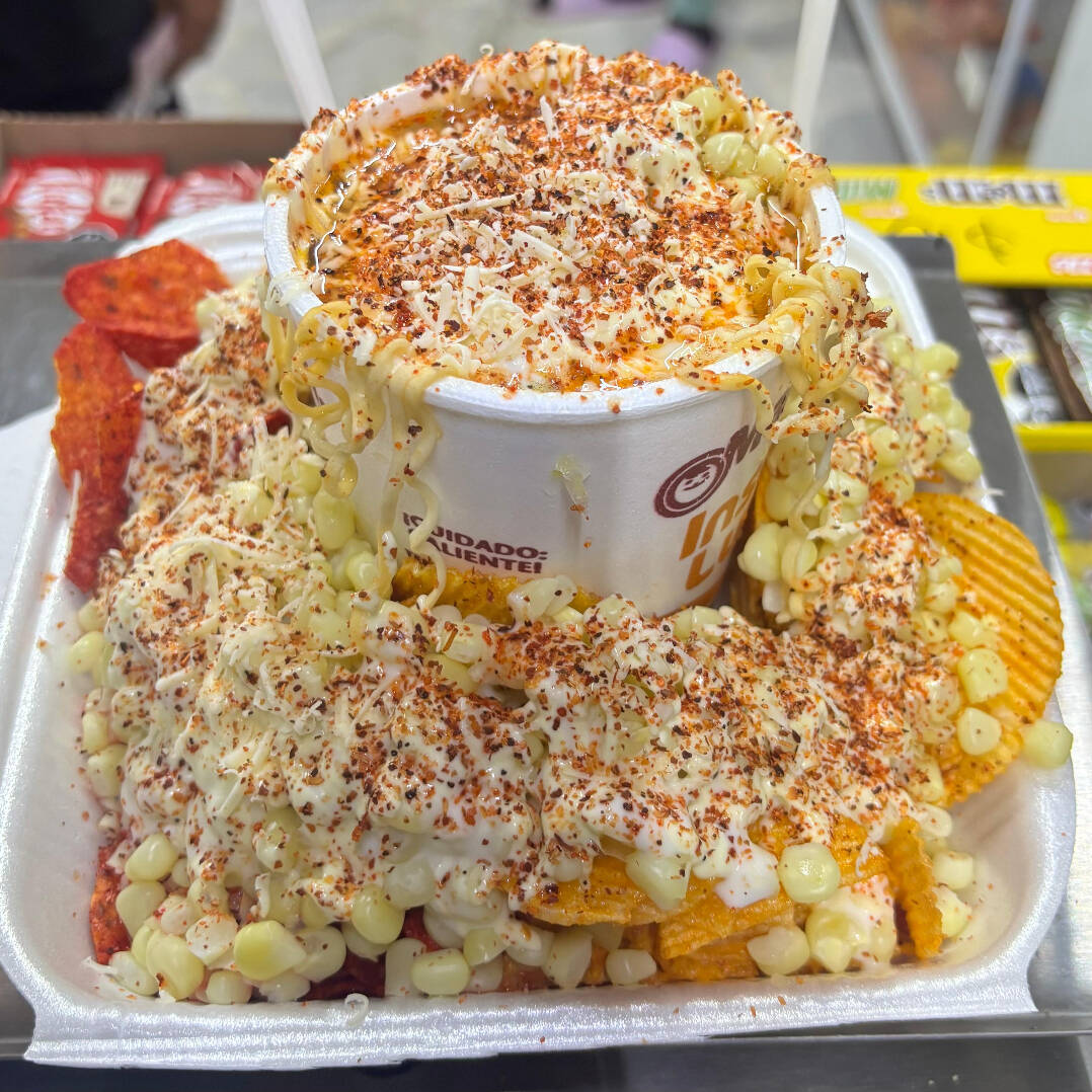 Deliciosa maruchan preparada con caldito del elote, elote, mantequilla, crema, mayonesa, queso blanco, chile en polvo.