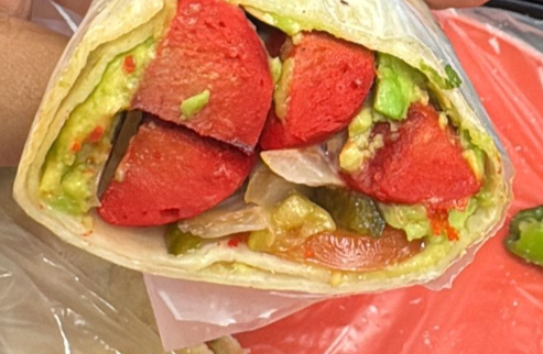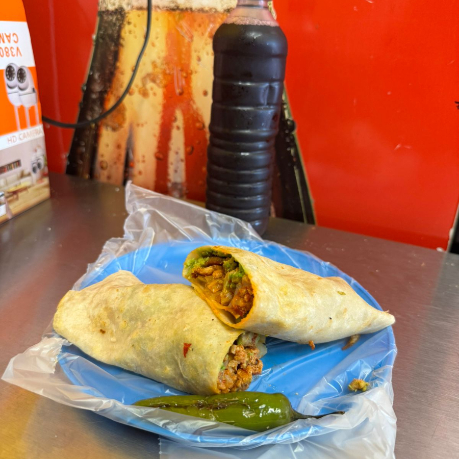 Pollo tierno envuelto con aguacate, mayonesa, chile, tomate y cebolla. Ligero, pero lleno de sabor.