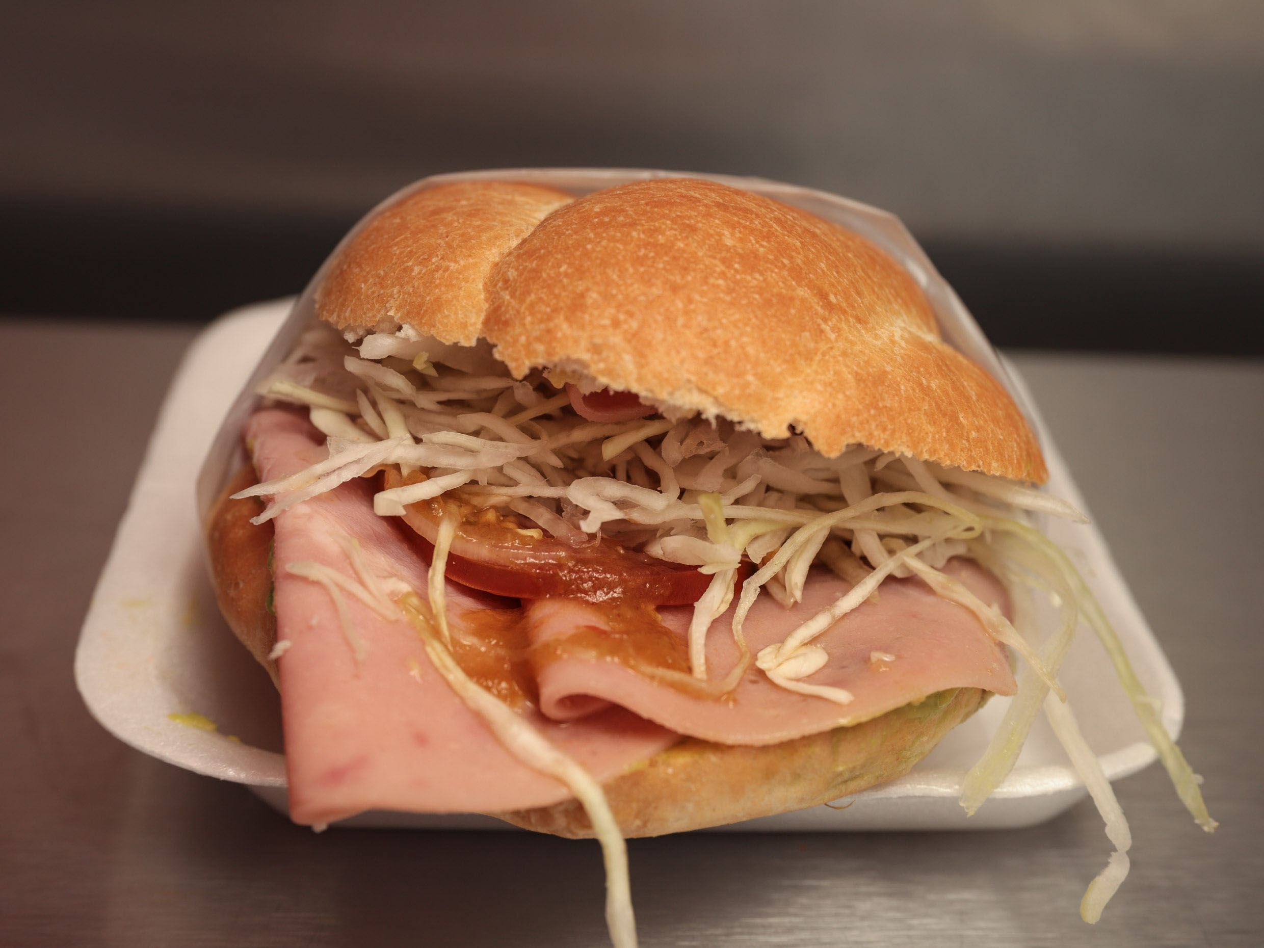 Pierna, jamón, queso de puerco, queso blanco y queso amarillo.