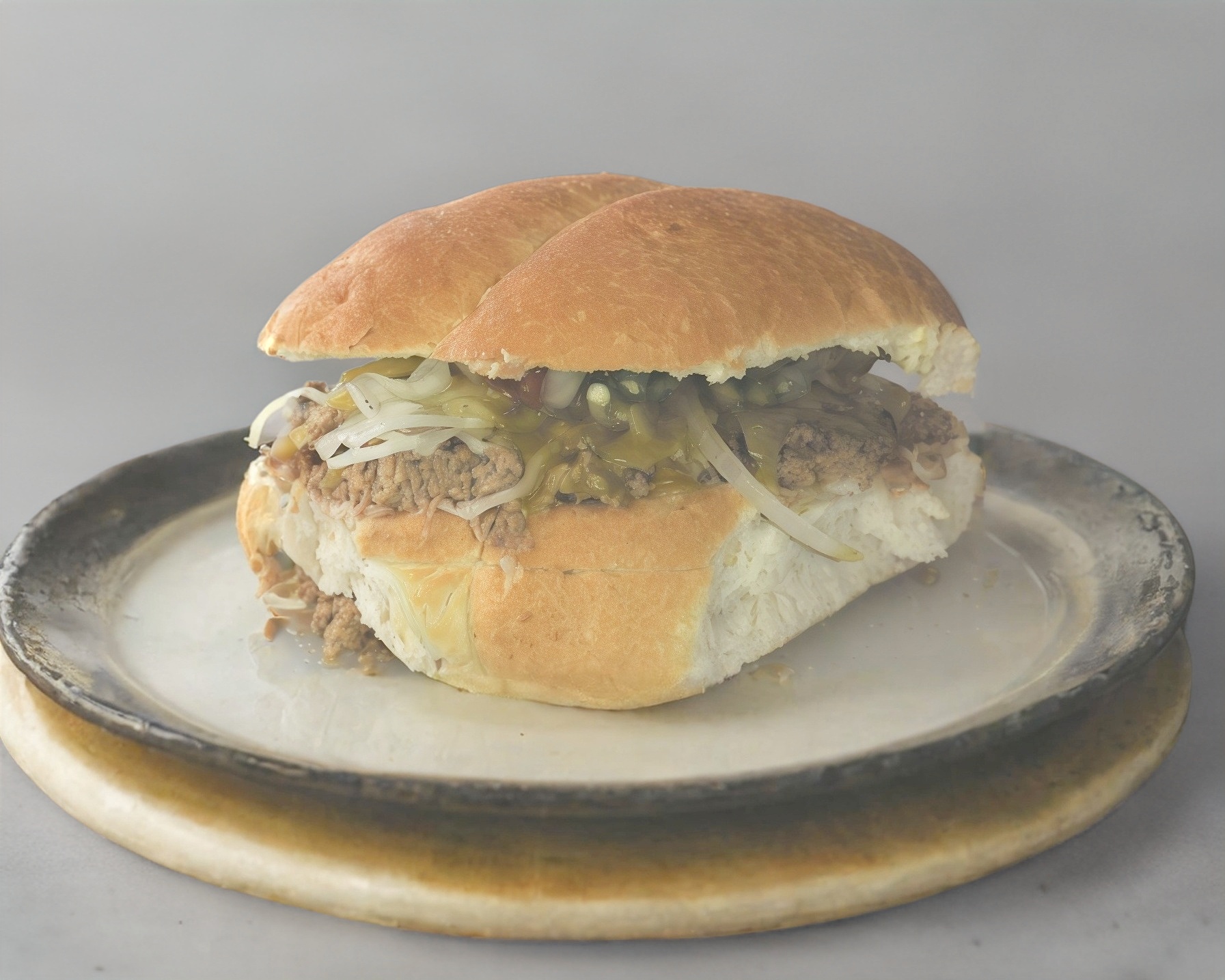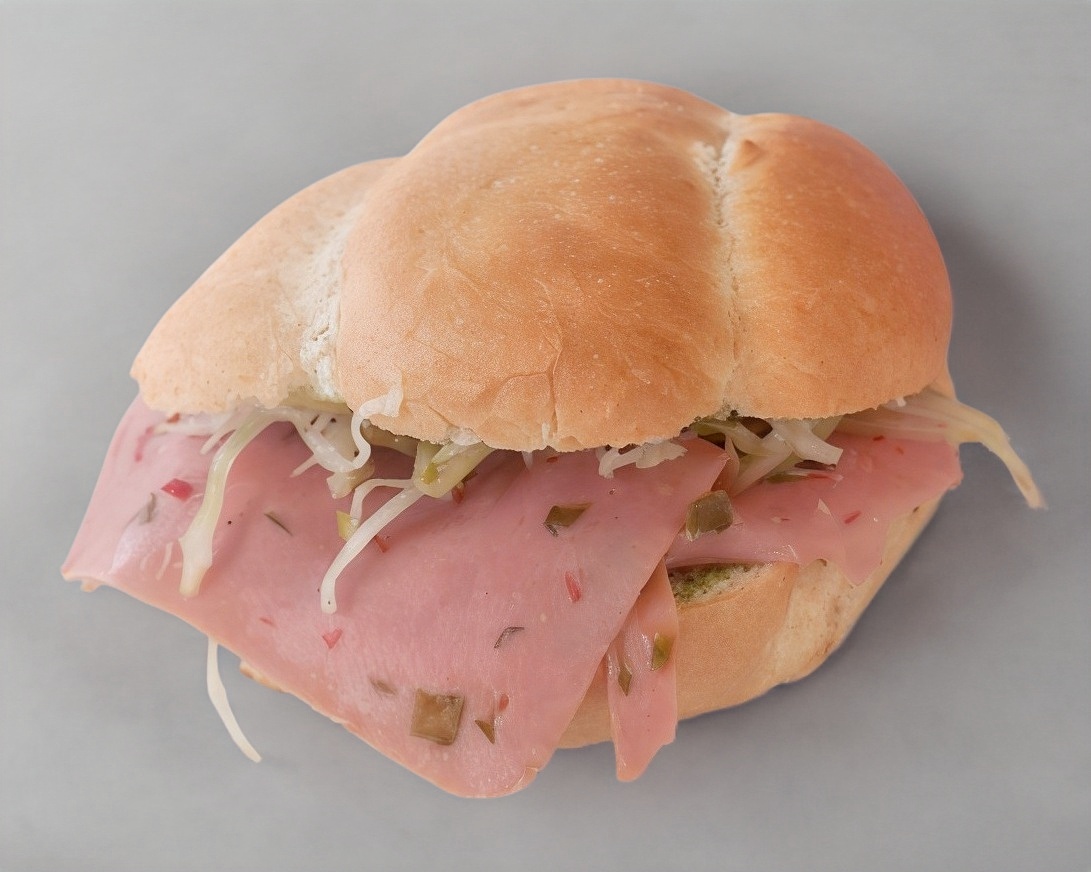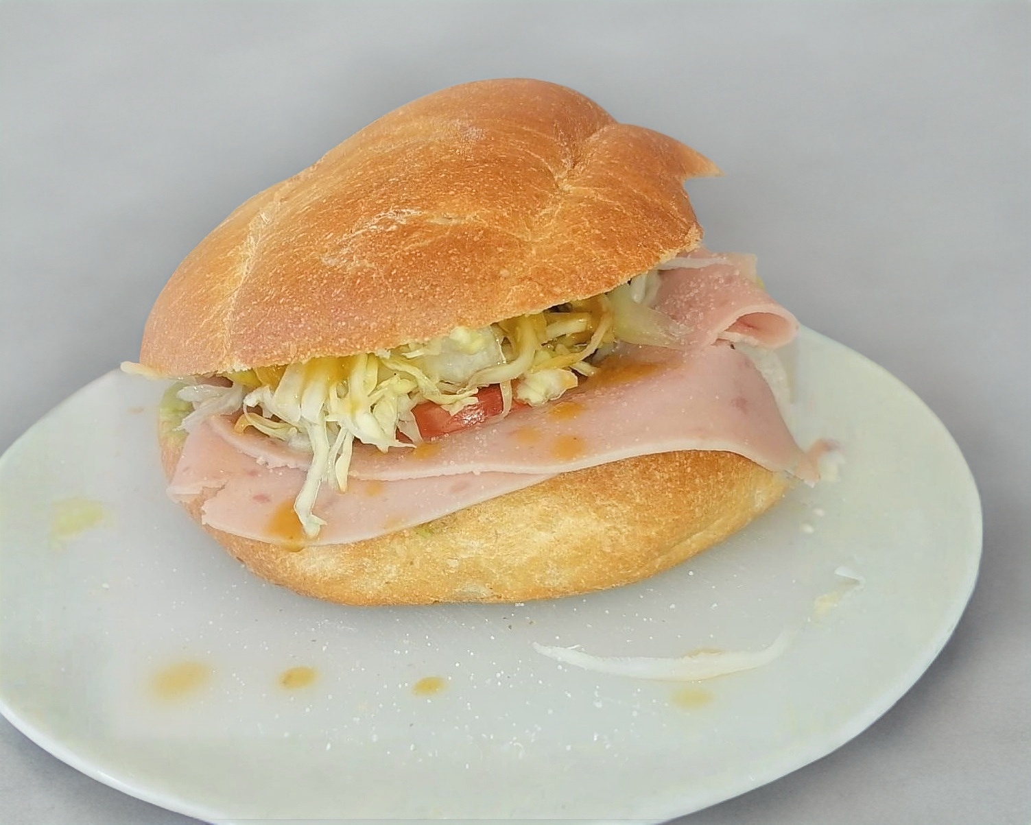 Jamón, queso puerco, queso amarillo queso blanco y pastel de pollo..