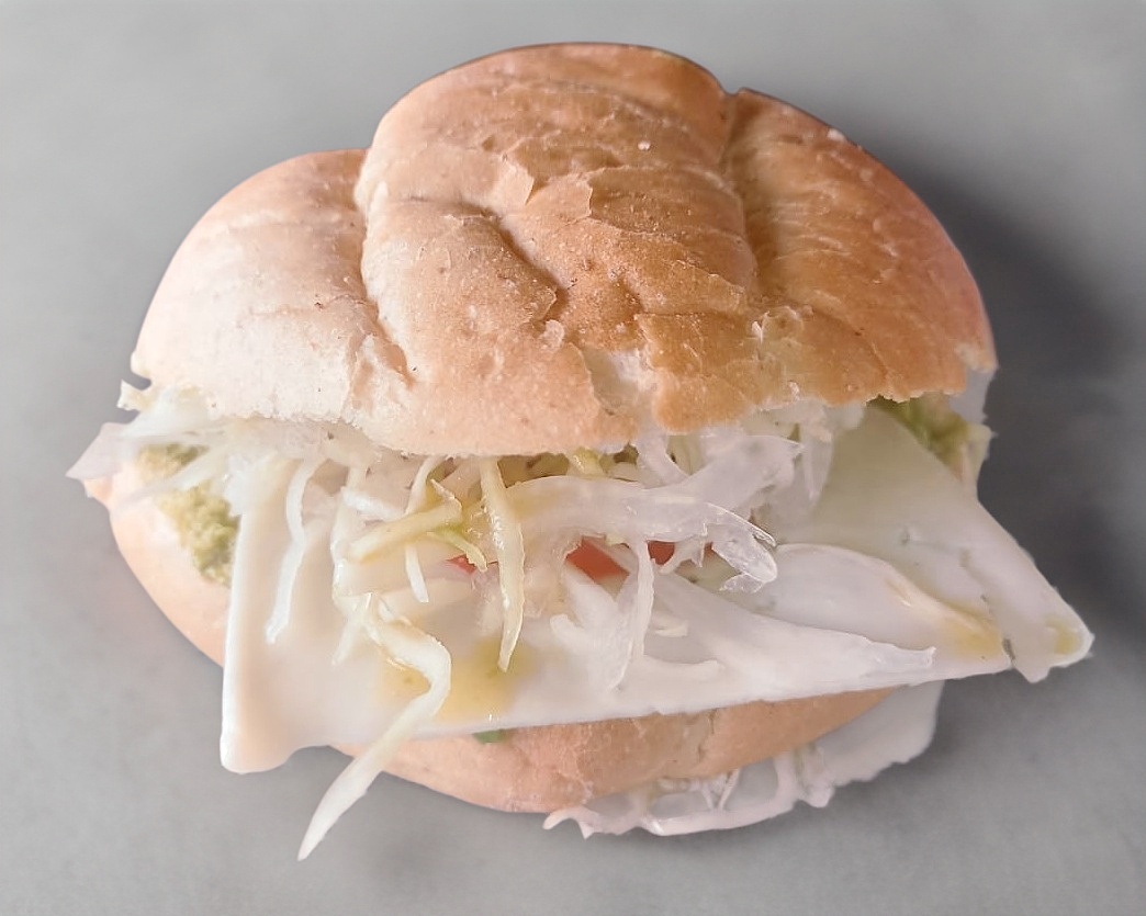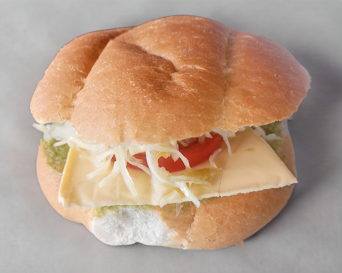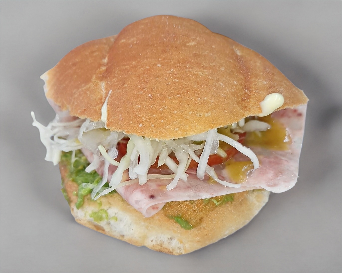 Pierna aguacate jamón queso de puerco queso amarillo pastel ponimiento verduras salsa al gusto y aderezo de la casa.