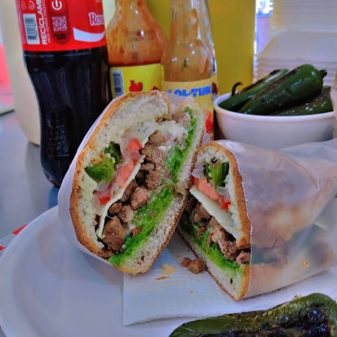 Adobada,aguacate,queso blanco,mayonesa,mostaza,cebolla asada