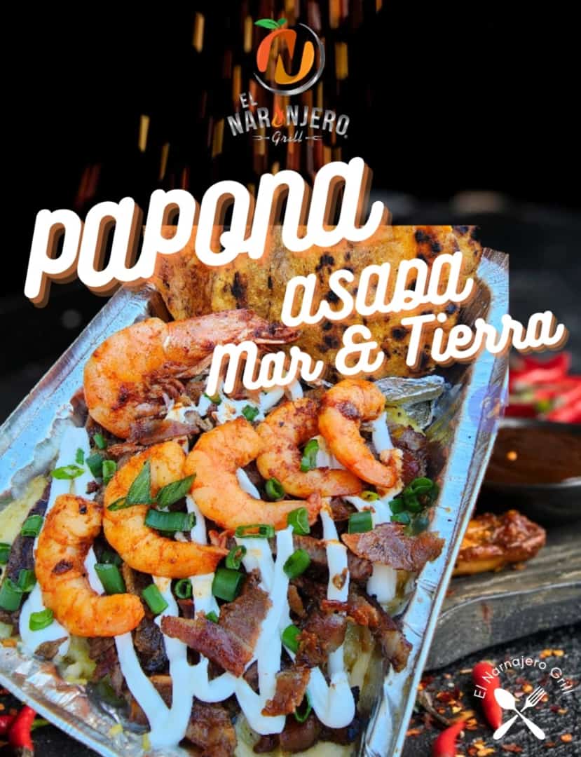 1 PAPONA ASADA +SIRLOIN+TOCINO+CAMARONES AL GRILL+QUESO+CREMA+TOSTADAS RANCH+ADEREZO HABANERO
