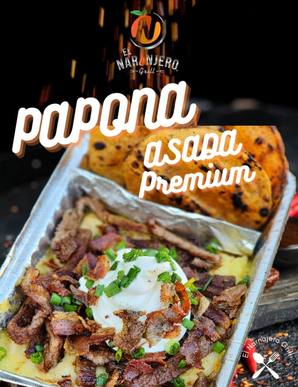 1 PAPONA ASADA +sirloin +tocino +extra queso +crema +cebollín+tostadas ranch+aderezo