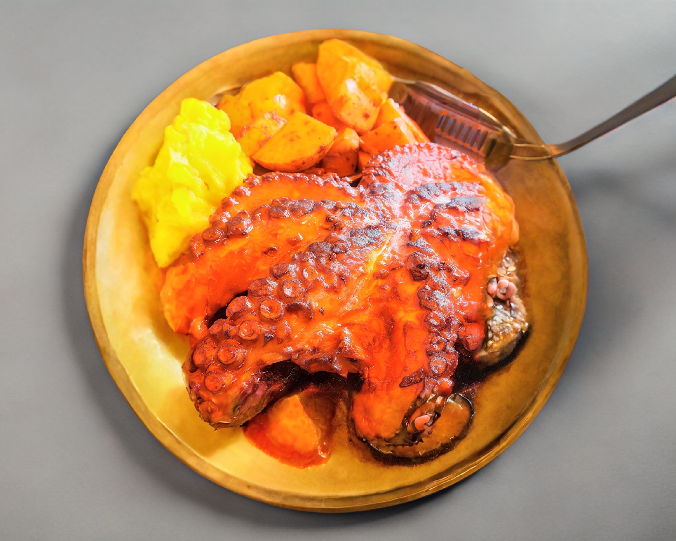 1 Pza pulpo colosal a las brasas+papa asada especial (recomendación del parrillero)+chips sal+ 1 pza pan de ajo + aderezos de la casa.