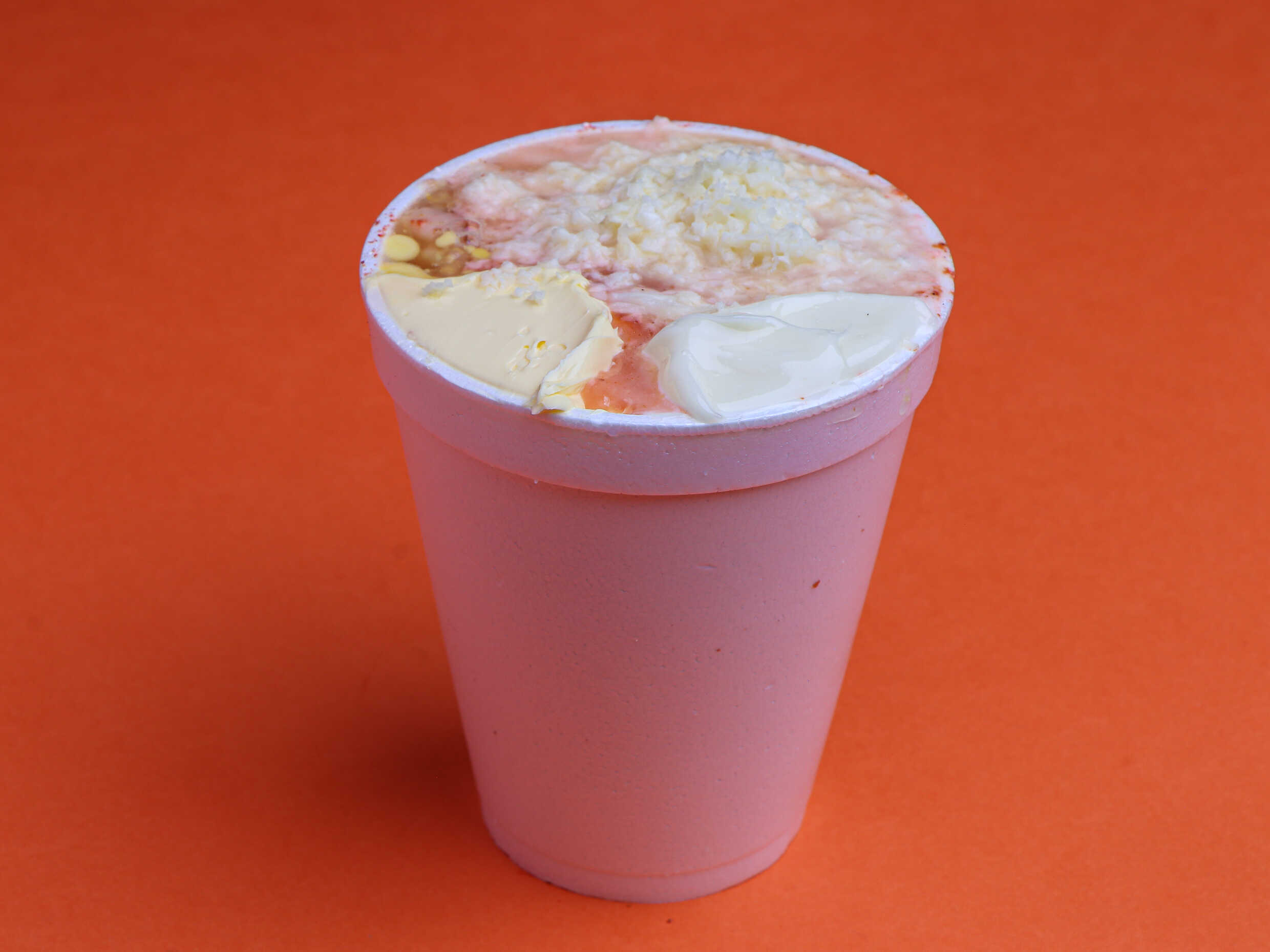 Delicioso elote preparado con mantequilla, mayonesa, y queso. (1 VASO DE LITRO)
