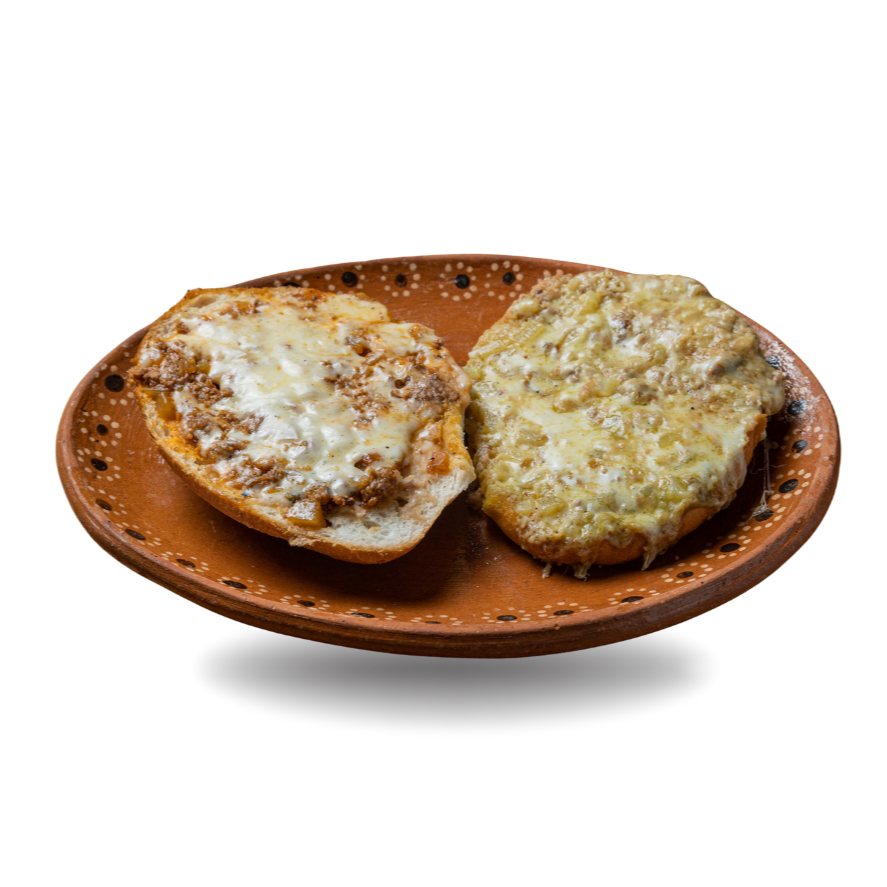 1 Pieza de pan, partida a la mitad, con frijoles y queso