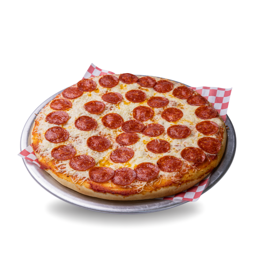 Deliciosa pizza elaborada con salsa de tomate, queso y pepperoni. Acompañada con aderezo de la casa