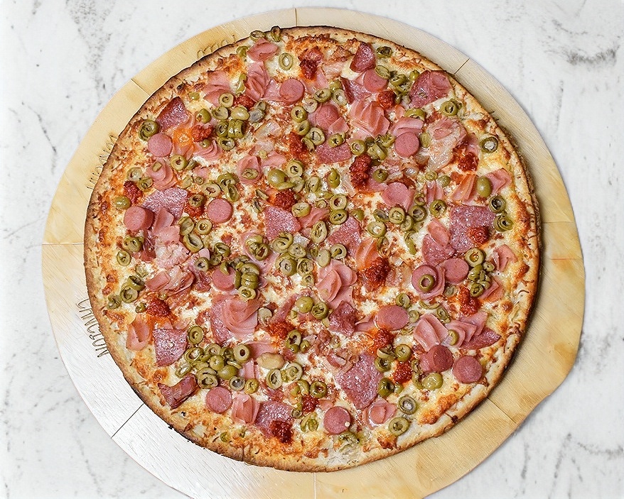 Jamón, tocino, salami, chorizo, salchichas y aceitunas
