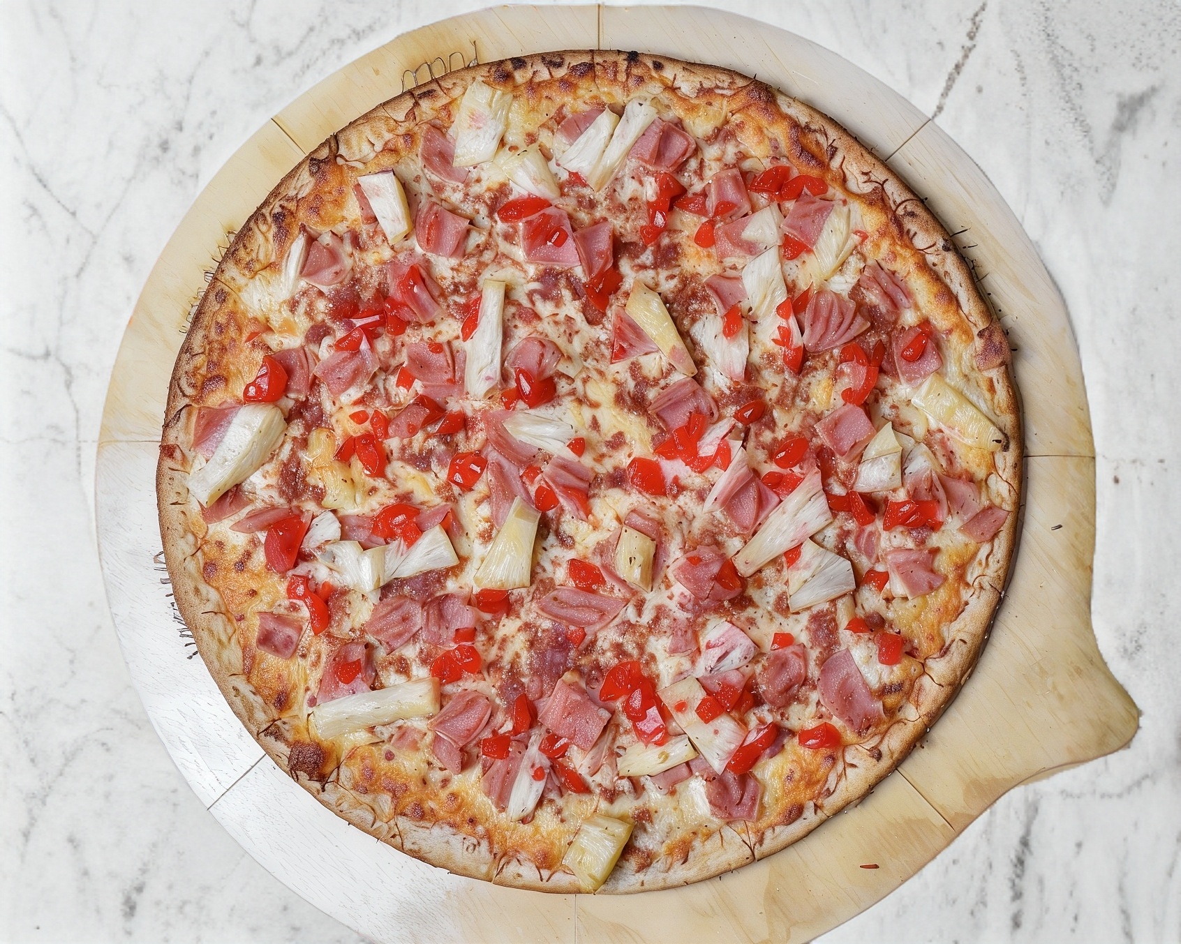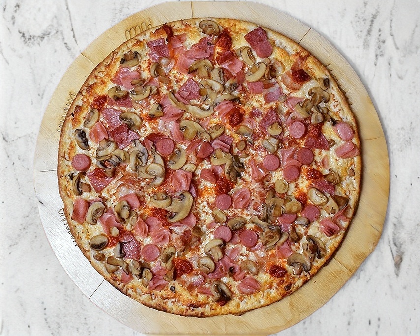 Jamón, tocino, chorizo, salchicha y champiñón.