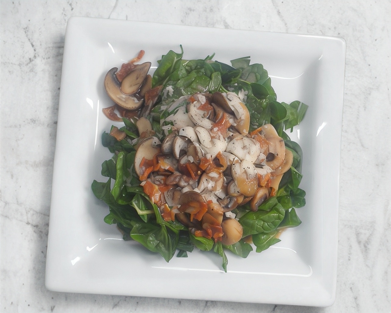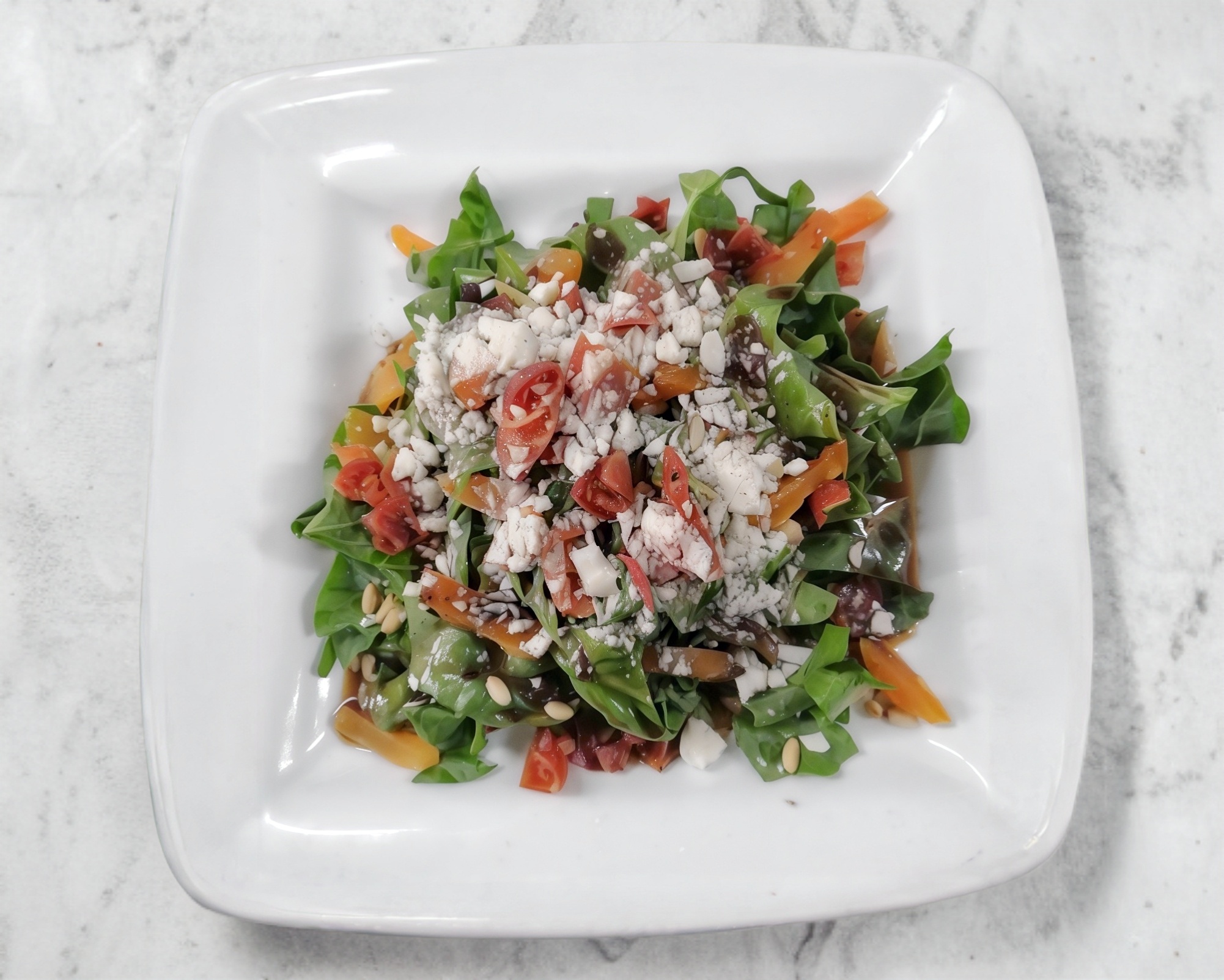 Acelga, piñón, jamón serrano, queso feta y aceite de olivo.