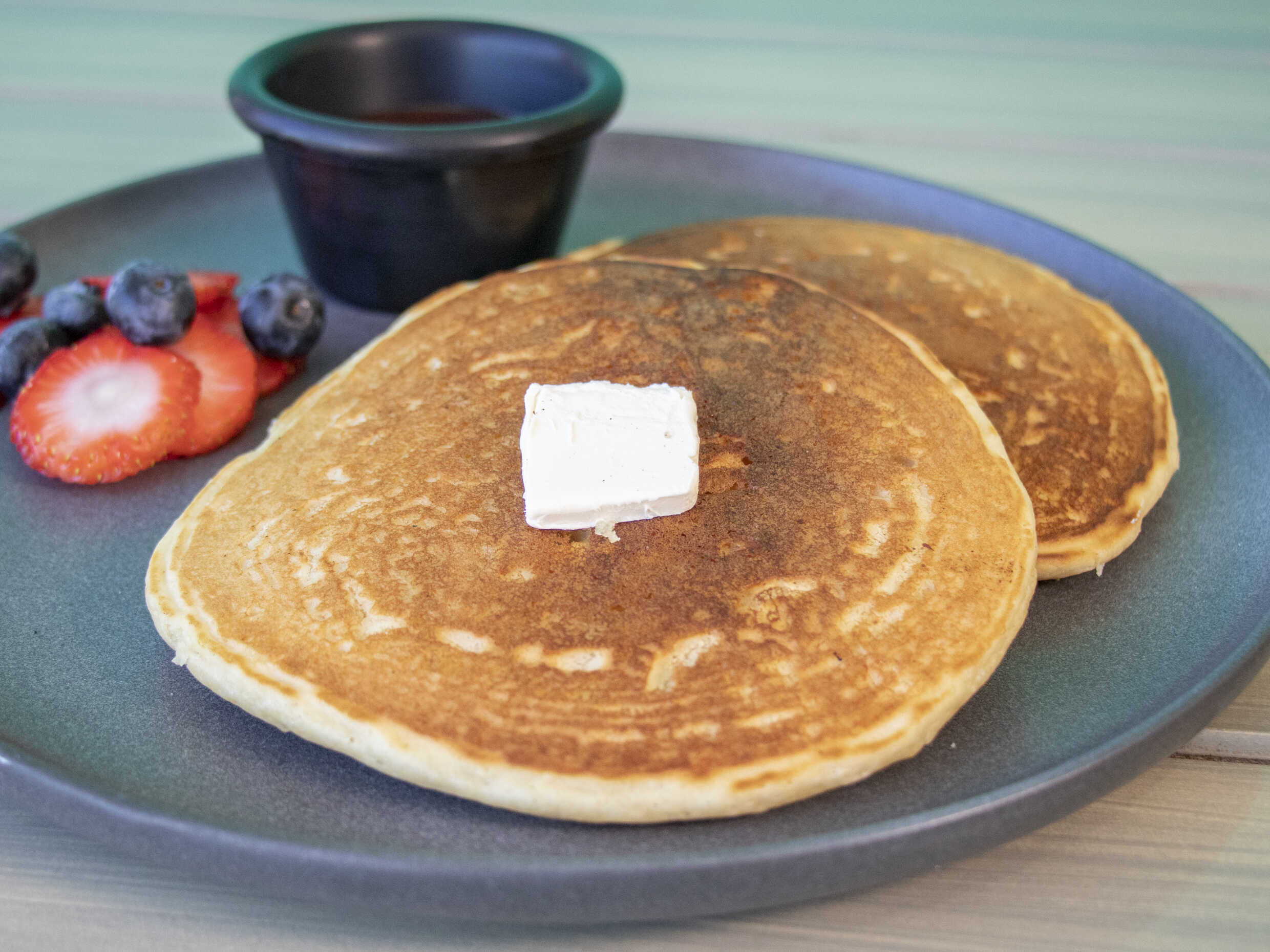Hot canes o waffles acompañado de huevo revuelto o estrellado especifica.