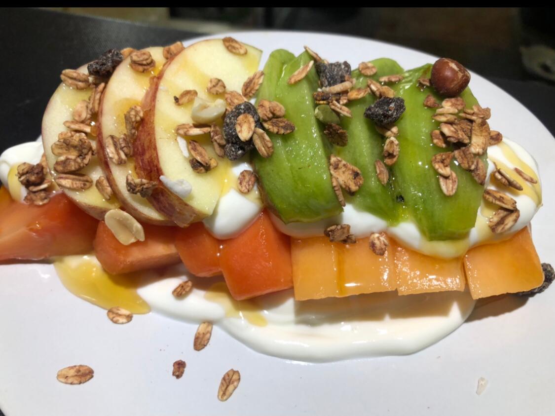 Queso amarillo y blanco, jamón, tocino, espinaca, tomate, aguacate y salchicha.