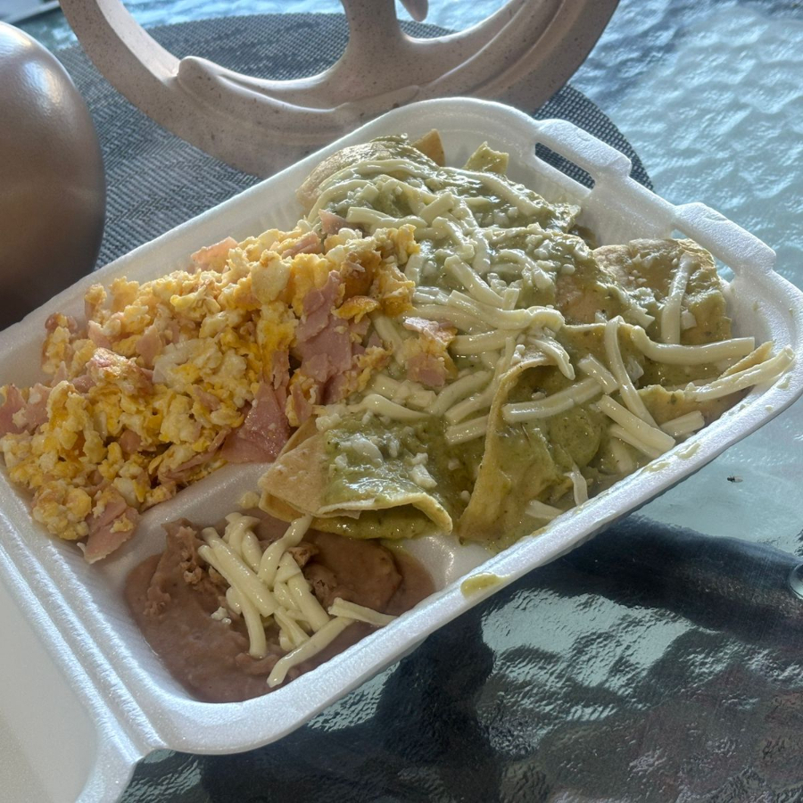 Salsas roja, verde o chipotle, acompañados de frijoles y huevo a tu gusto (estrellado, torta, jamon)