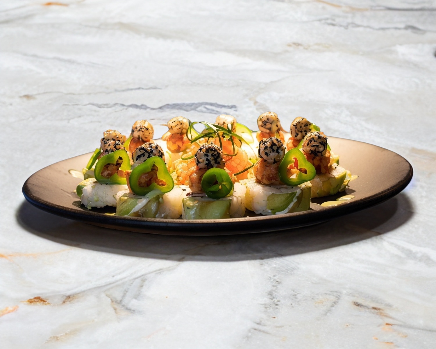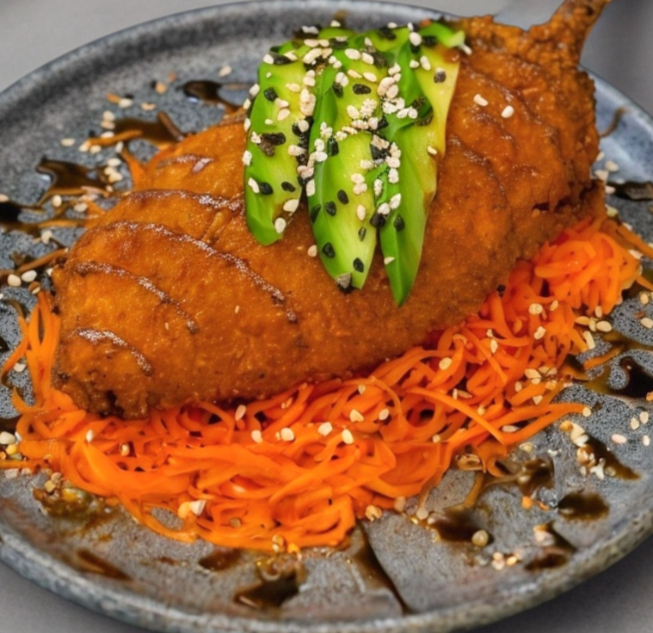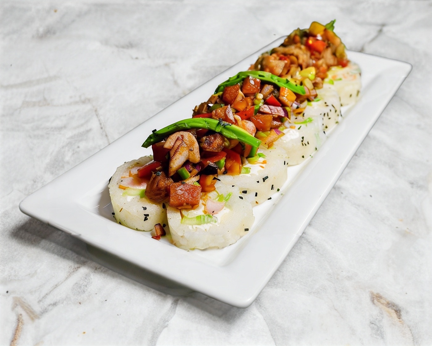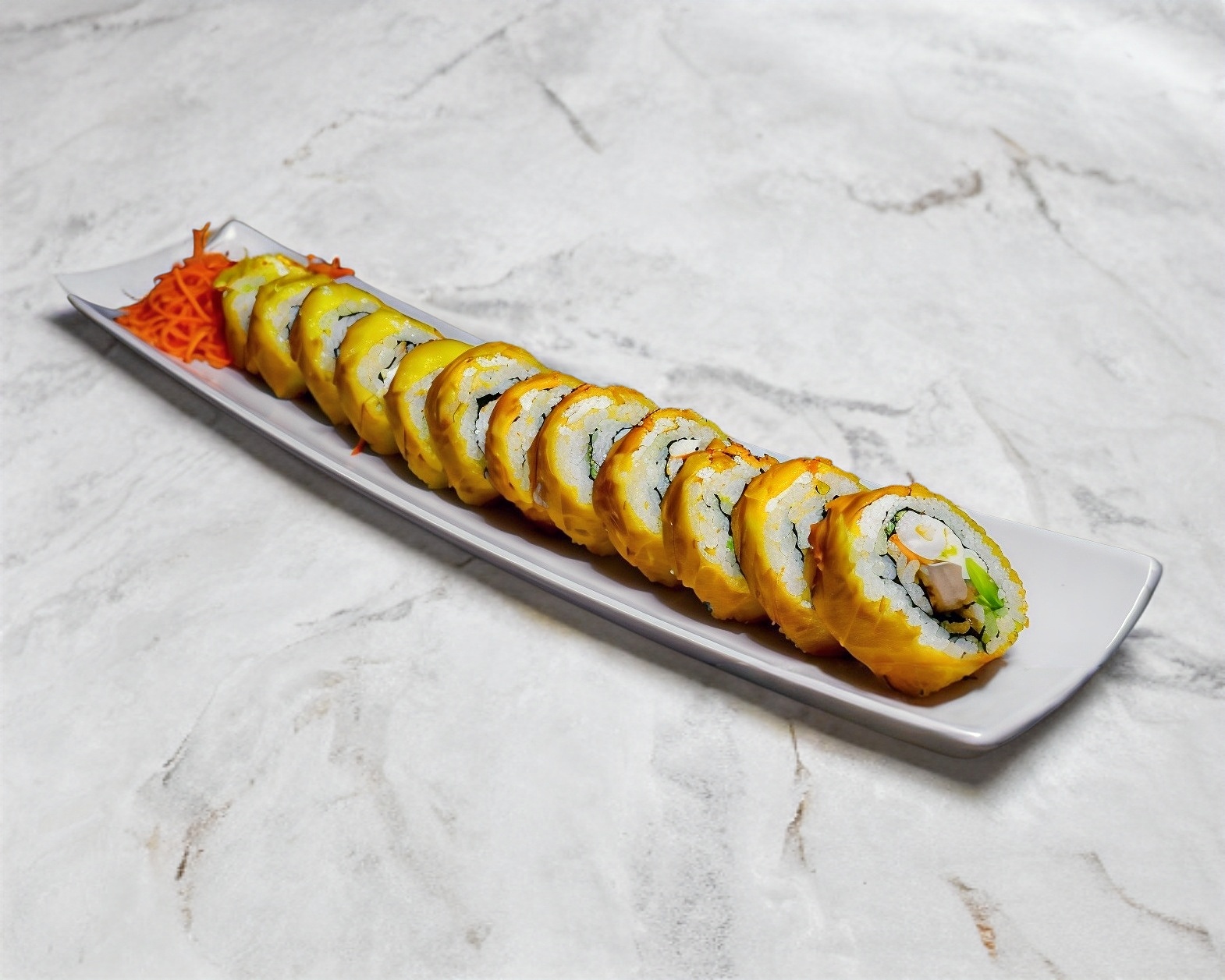 Rollo empanizado cielo, mar y tierra de 10 a 12 piezas. Plato persona
