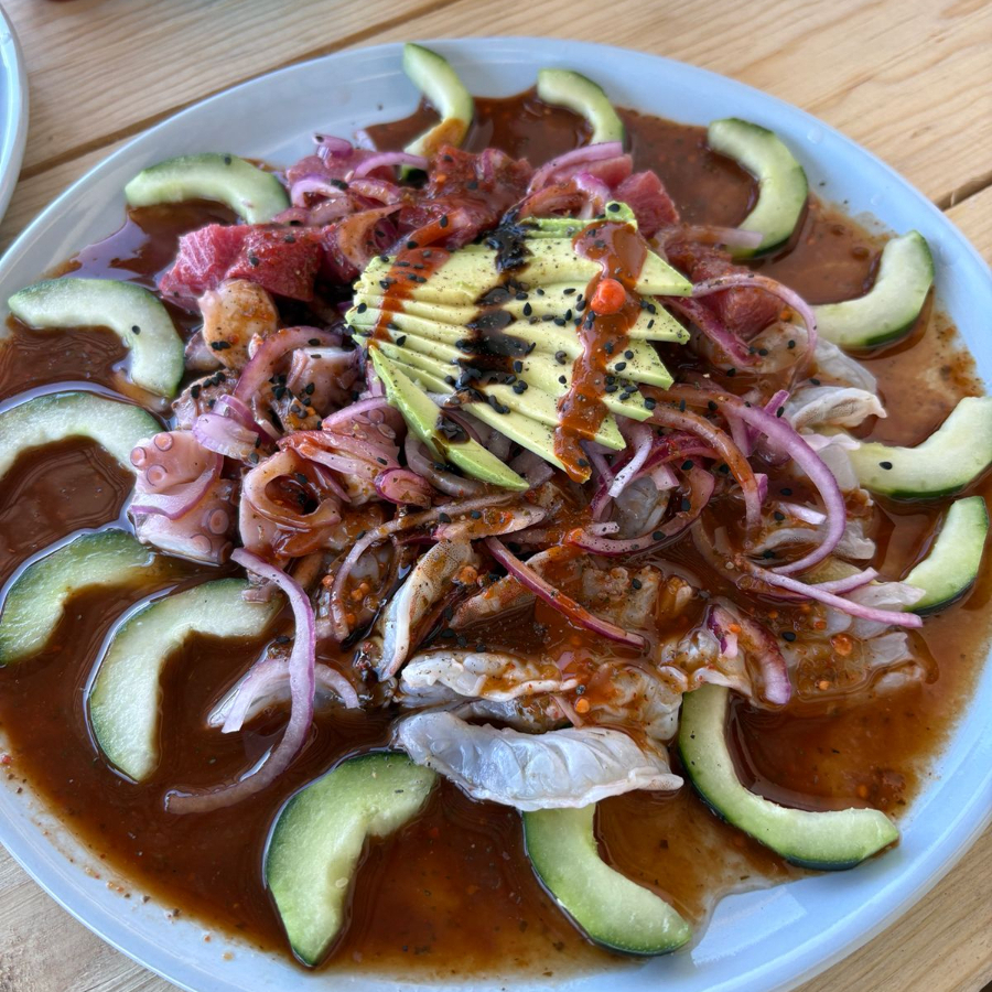La combinación perfecta para compartir: camarón, pulpo y atún fresco, todo perfectamente salseado con el toque de la casa.