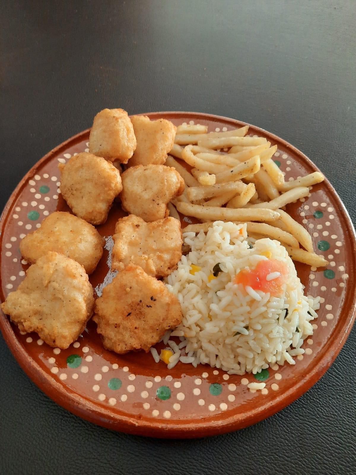 Acompañada de porción de papas. Ideal para el peque de la casa.