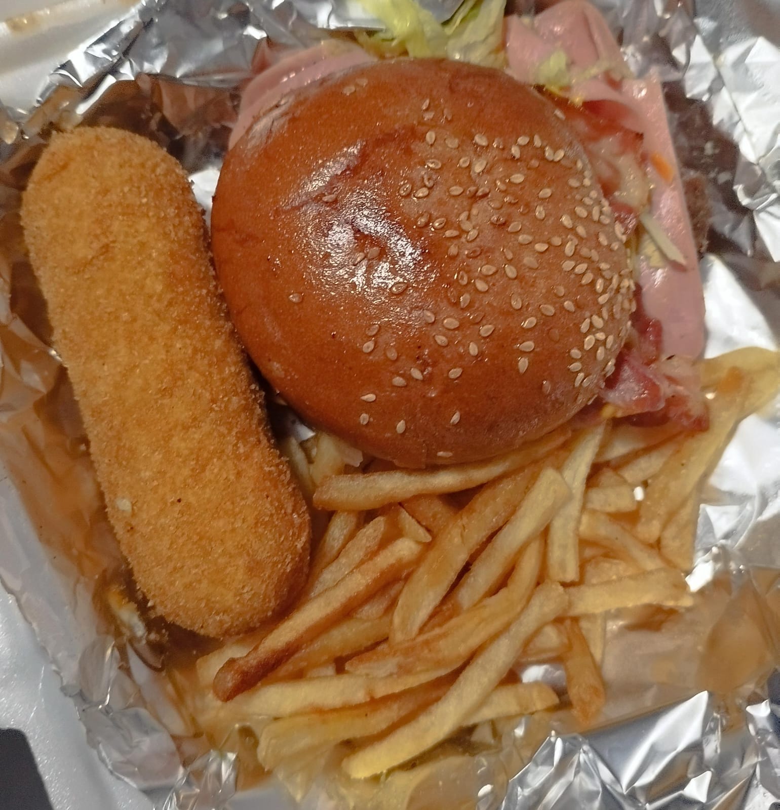 Hamburguesa Infantil + Banderilla + Papas a la Francesa.