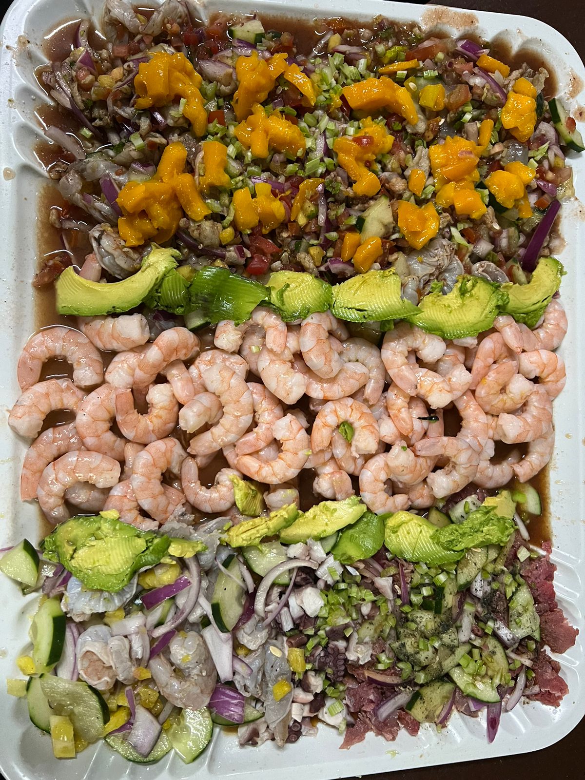 Litro de Ceviche de Camarón Acompañado de Tostadas y Complementos