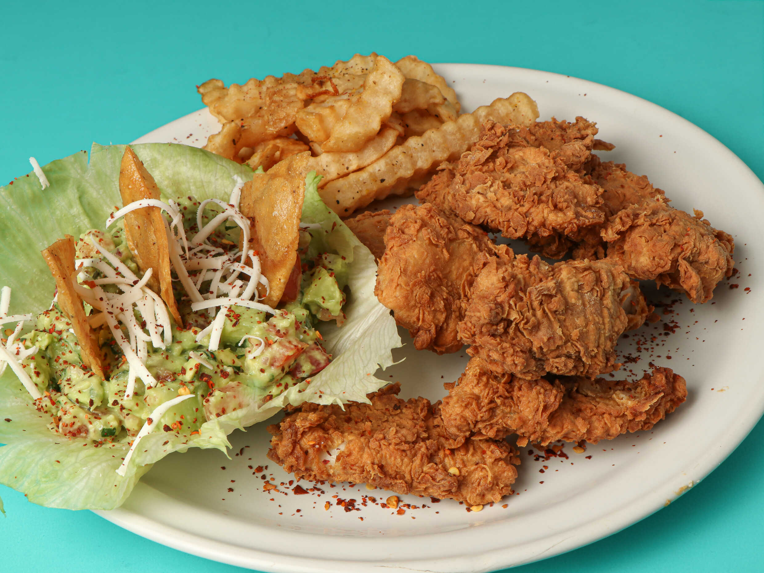 Acompañada de papas a la francesa.