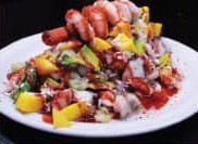 Aguachile, camarón cocido y pulpo.