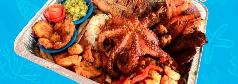Camarón cocido, ceviche de camarón, pulpo, aguachile, almeja, pepino, bañados en salsa de chiles.