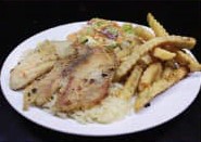 Acompañada de papas a la francesa.