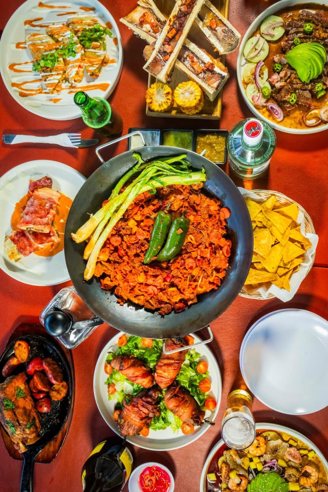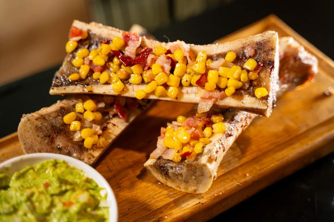 3 Piezas. Rib Eye con Guacamole, Morrón, Cebolla Curtida y Tuétano al Grill.