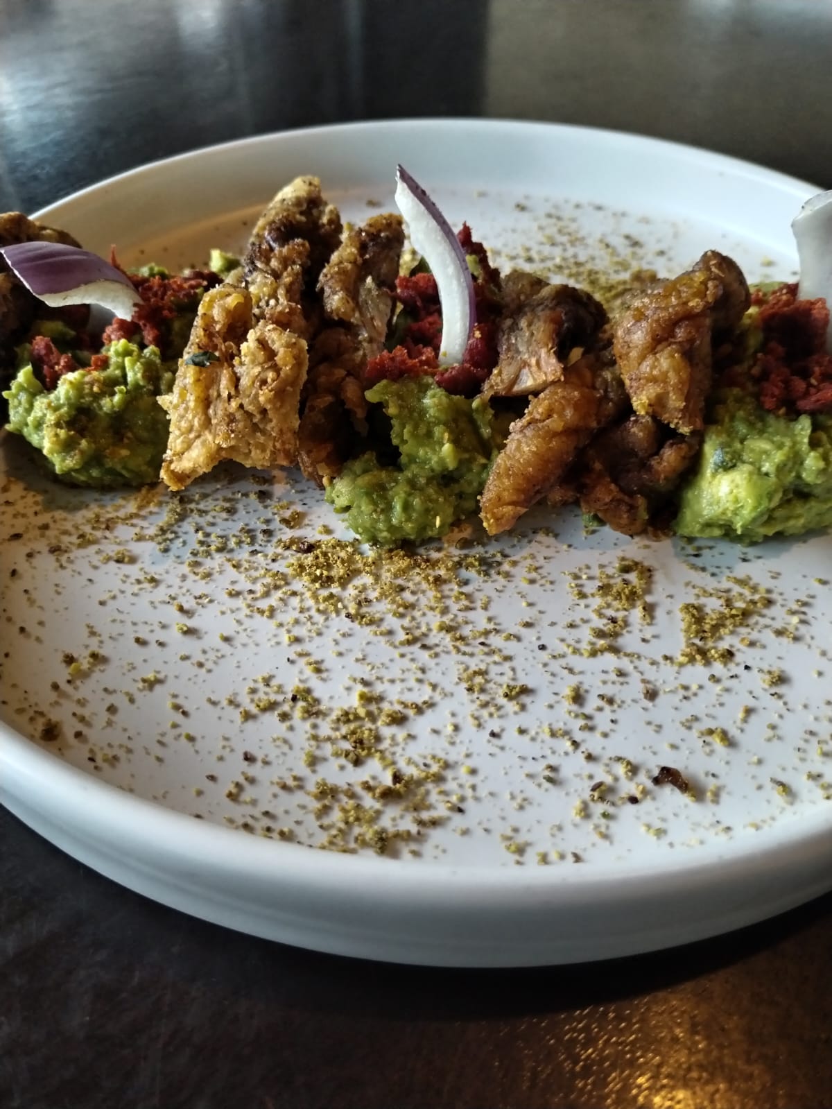 3 Piezas. Chicharrón Carnita Acompañado de Guacamole.