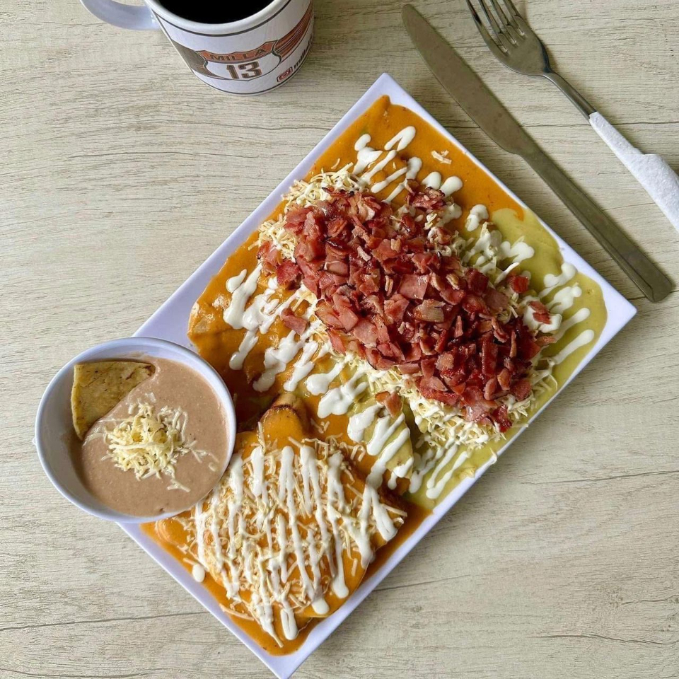 Una fusión única. Chilaquiles con un toque italiano inigualable, preparados con ingredientes frescos y sazón especial.