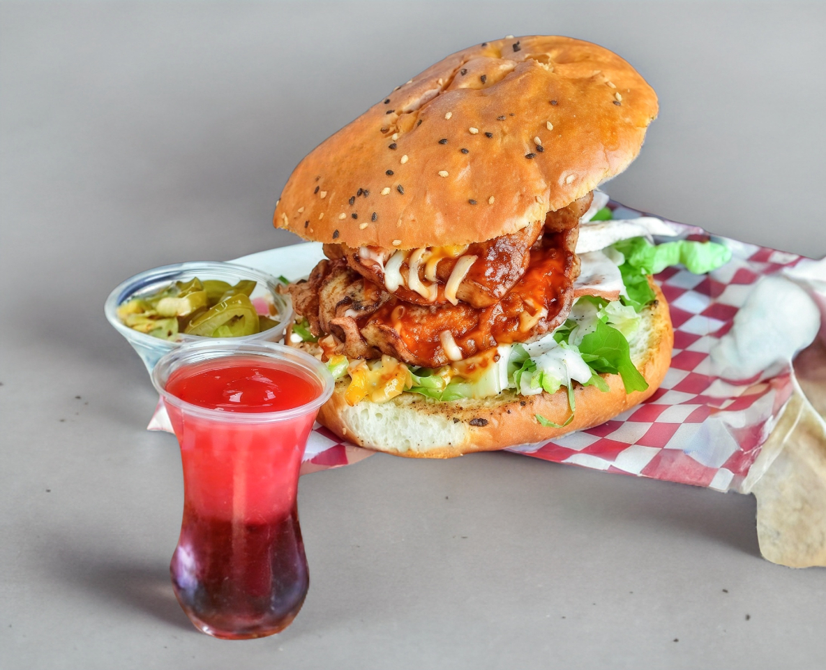 Auténtica carne menonita (150 Gramos), combinación de mix de lechuga, tomate y cebolla morada bañada en salsa chipotle. Todos nuestros panes son mantequillados en aderezo de la casa signature.