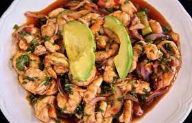 Queso, aguacate, pepino y camarón, coronado con queso manchego gratinado y terminado en un tampico picante con pollo crunch.