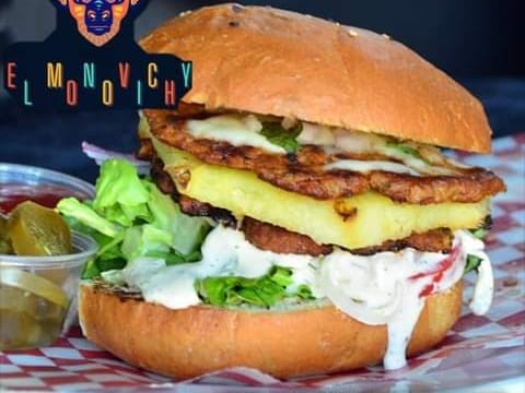Doble carne al pastor (200 gramos), queso gratinado, rodaja de piña, mix de lechugas, tomate y cebolla morada, bañado en un exótico aderezo de chile de árbol. Todos nuestros panes son mantequillados en aderezo de la casa signature.
