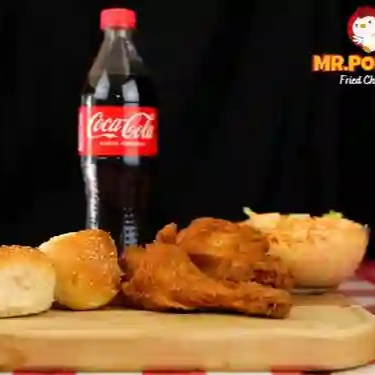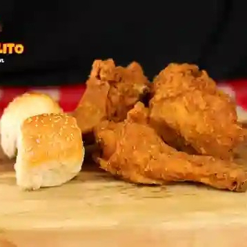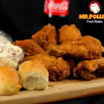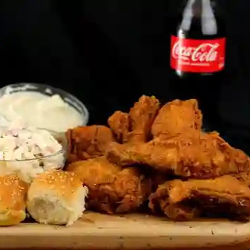8 Piezas de pollito, 1 complemento a elegir, 4 bollitos, 1 Coca Cola 1.5 L y 1 salsa picante.