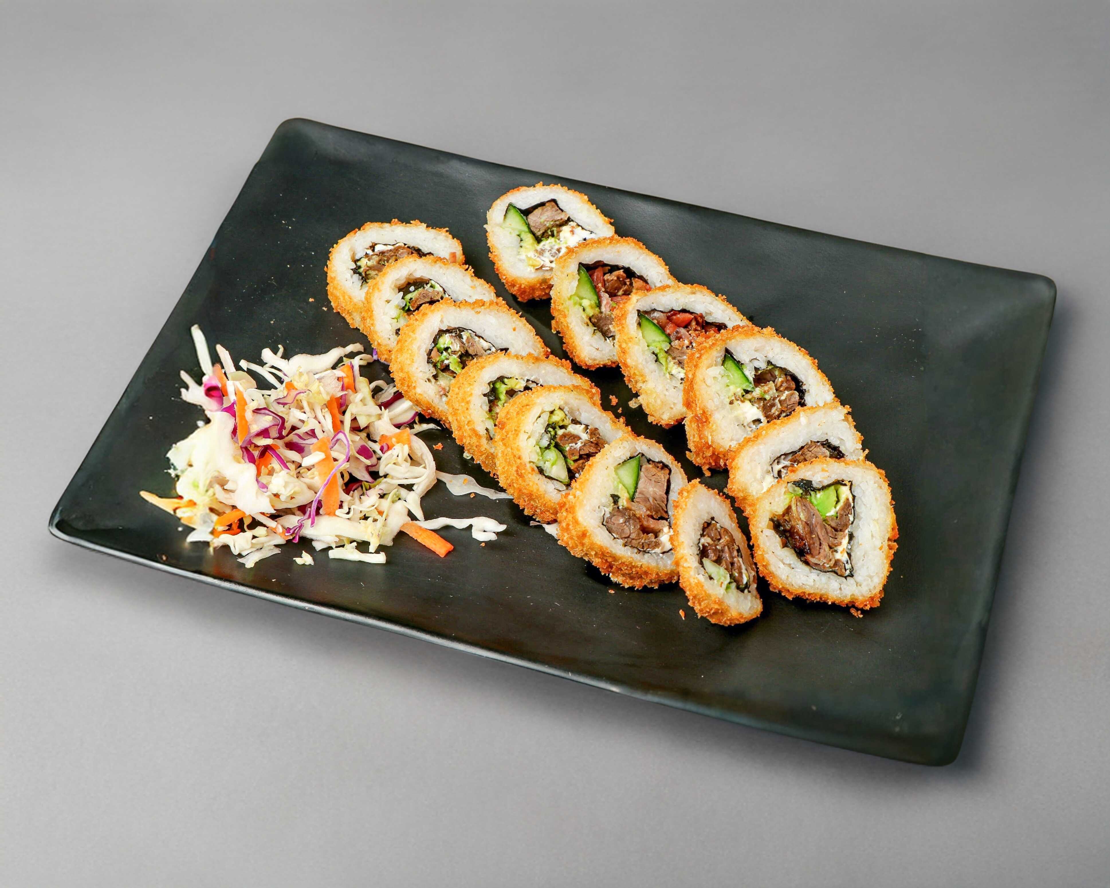 Philadelphia, aguacate, tocino, arrachera y pepino.