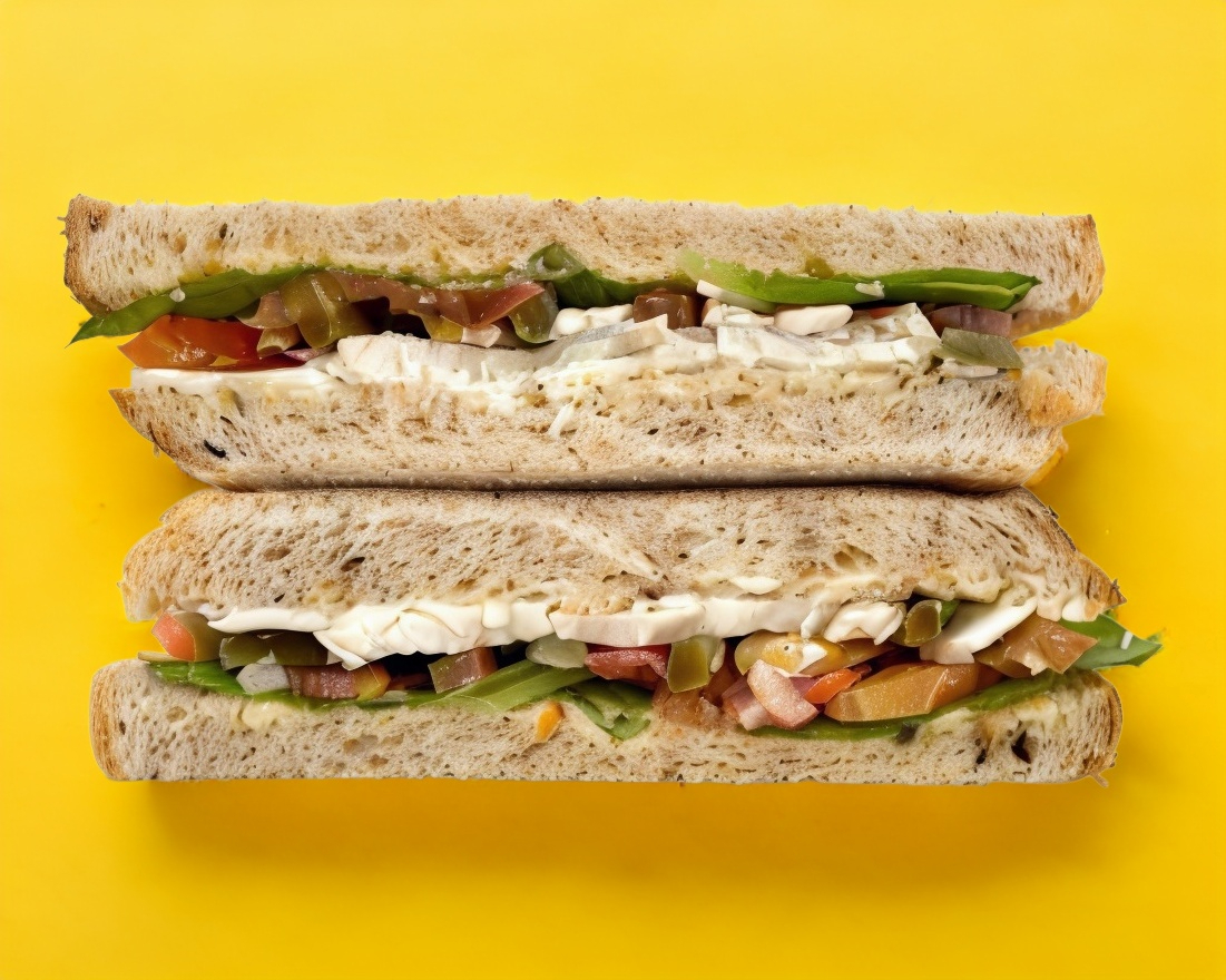 BAGUETTE INTEGRAL, LECHUGA, TOMATE, PEPINO, CHILE, POLLO Y QUESO DOBLE CREMA