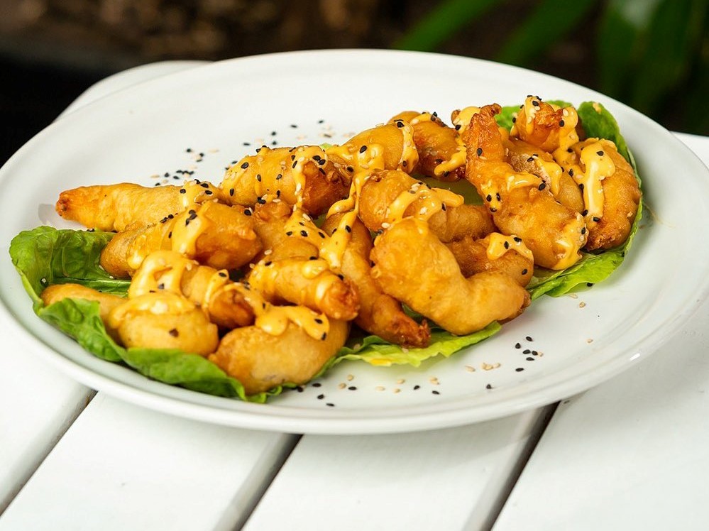 Taco de camarón ensabanado.