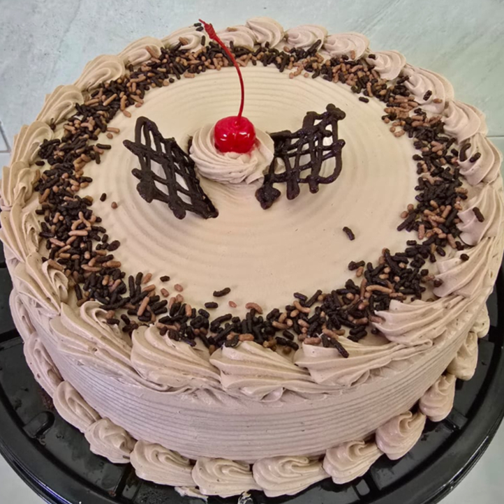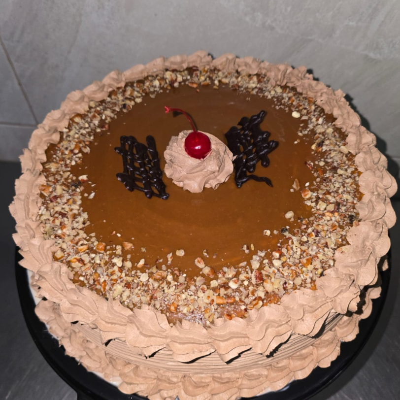 Pan de chocolate humectado con leche relleno de cajeta con nuez