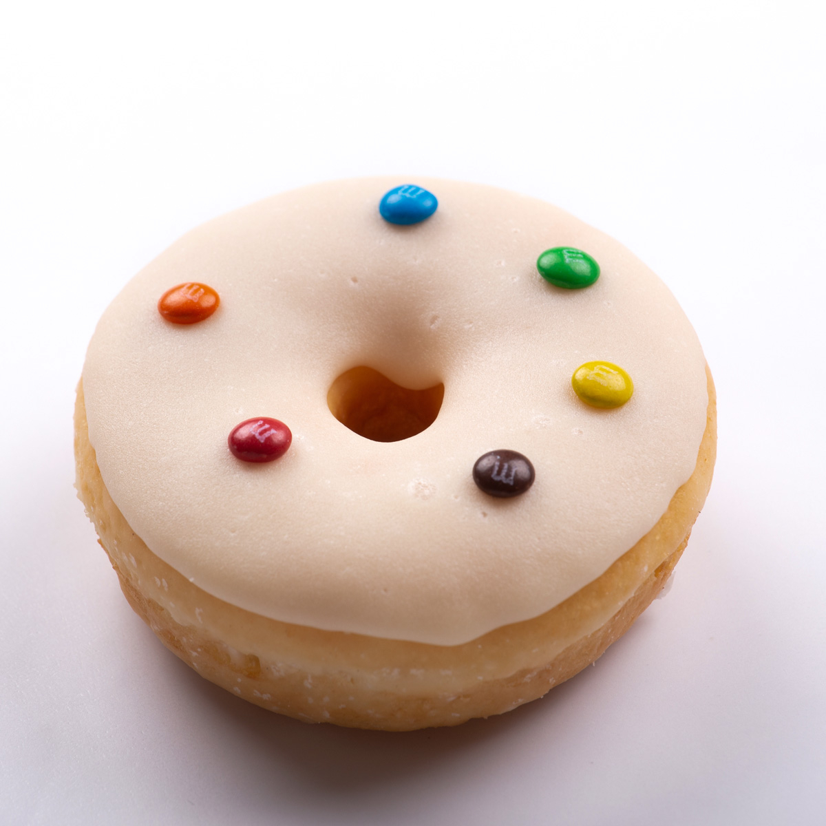Donita divertida con coloridos M&M’s encima.