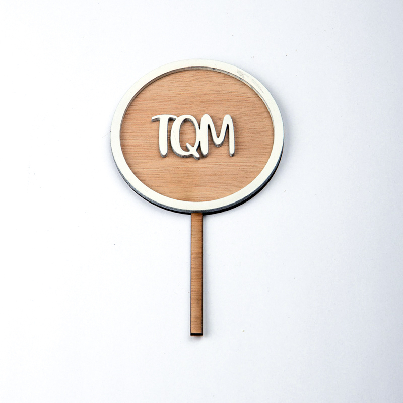 Mensaje “TQM” en MDF doble con estilo moderno.