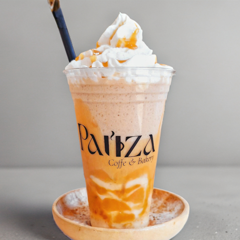 16 Oz. Deliciosa combinación de espresso, leche vaporizada, caramelo y vainilla, con un chorrito de caramelo extra por encima que le da un sabor irresistible.
